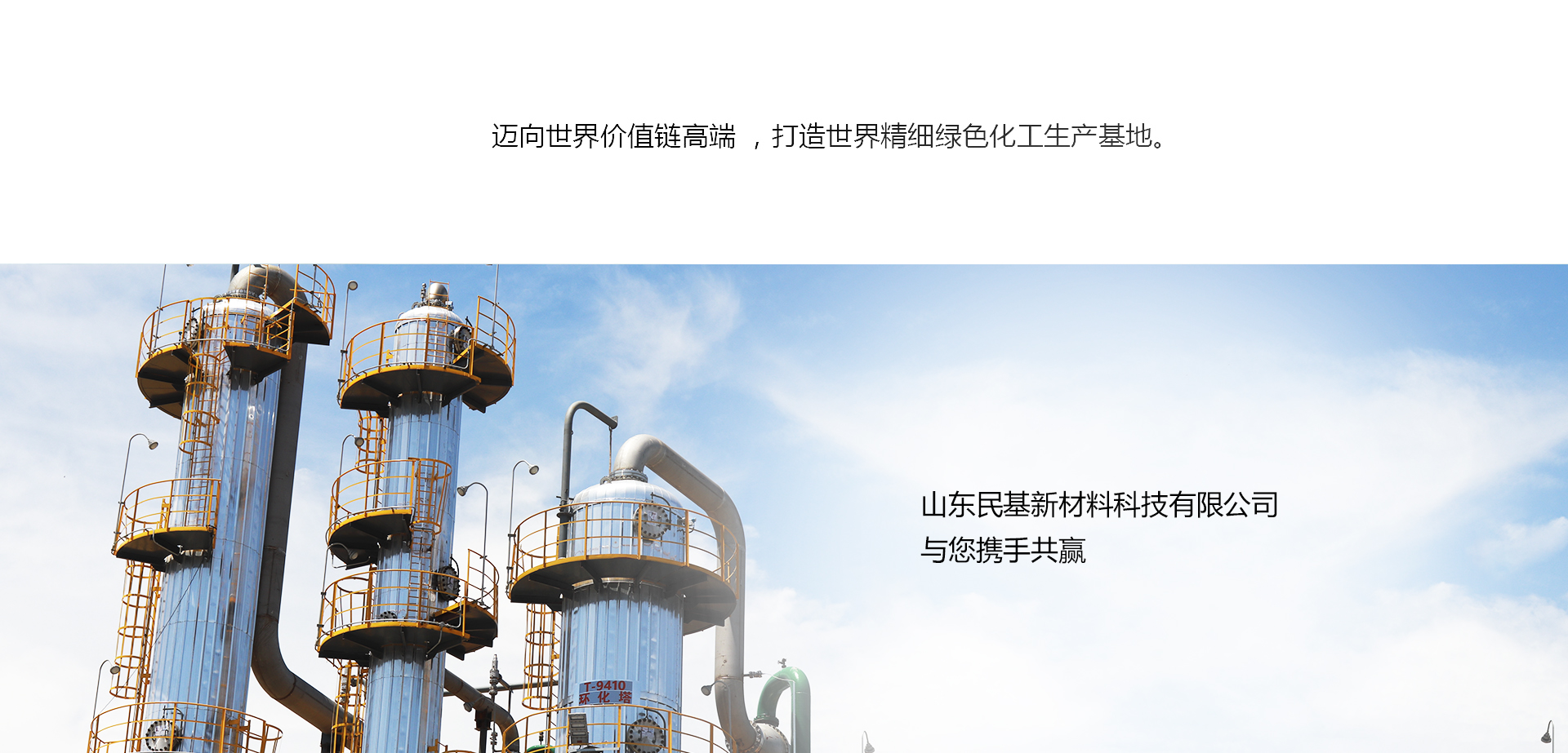 山東民基新材料科技有限公司成立于2008年5月,占地面積20萬(wàn)平方米,注冊(cè)資本1.1億元,是山東省高新技術(shù)企業(yè)、山東省雙體系標(biāo)桿企業(yè)、山東省氯乙酸行業(yè)安全操作規(guī)程起草單位、山東省瞪羚企業(yè)、山東省“專精特新”中小企業(yè)、山東省“中小企業(yè)隱形冠軍”,獲山東省“富民興魯勞動(dòng)獎(jiǎng)狀”、“振興淄博勞動(dòng)獎(jiǎng)狀”、“淄博市勞動(dòng)關(guān)系和諧企業(yè)”、“淄博市示范誠(chéng)信企業(yè)”等榮譽(yù)20余項(xiàng)。擁有省級(jí)和市級(jí)“一企一技術(shù)”研發(fā)中心、淄博市工程研究中心,已申報(bào)、擁有專利30余項(xiàng)。 公司主要產(chǎn)品:氯乙酸、環(huán)氧氯丙烷、三甲基乙酸、三甲基乙酰氯、氯代特戊酰氯、濃硫酸、發(fā)煙硫酸、液體二氧化硫等,組成了“氯乙酸—環(huán)氧氯丙烷”、“三甲基乙酸—三甲基乙酰氯—氯代特戊酰氯”兩條綠色循環(huán)產(chǎn)品鏈,其中氯乙酸單套裝置產(chǎn)能全球第一。產(chǎn)品廣泛用于醫(yī)藥、農(nóng)藥、染料、膠粘劑等行業(yè),深受國(guó)內(nèi)外市場(chǎng)青睞。公司擁有自營(yíng)出口權(quán),通過(guò)了三體系認(rèn)證,獲頒歐盟3A信用評(píng)估證書、國(guó)內(nèi)3A級(jí)信用企業(yè)證書。 建基筑業(yè)十余年,公司始終踐行“創(chuàng)新驅(qū)動(dòng)、高端智能、高質(zhì)高效、綠色循環(huán)”發(fā)展理念,集中資源,定向發(fā)力,堅(jiān)守主業(yè),聚焦項(xiàng)目,聚力創(chuàng)新,致力于研發(fā)構(gòu)建“投入-產(chǎn)出-資源循環(huán)利用”的安全環(huán)保綠色制造體系,打造了新舊動(dòng)能轉(zhuǎn)換的“民基樣板”。